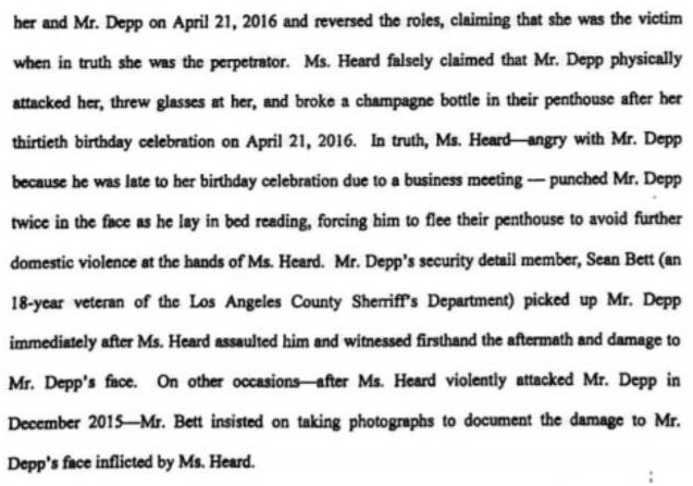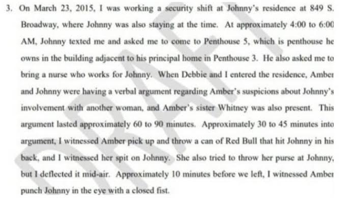 경호원은 조니 뎁의 얼굴에서 폭행 흔적을 확인했고