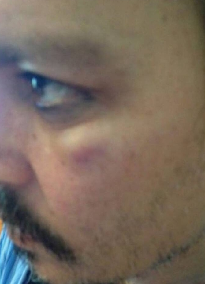 얼굴에 멍이 들고 상처가 났다고 주장.