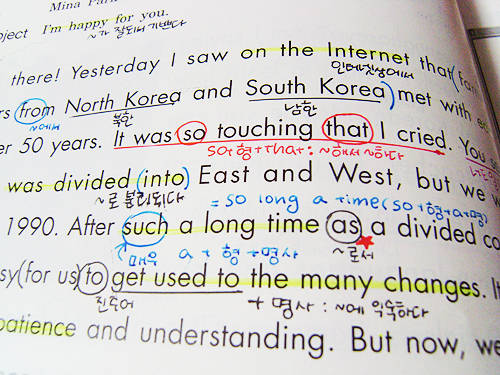 어휘, 구문, 문법학습을 정확하게 한꺼번에 하는 방식이지.