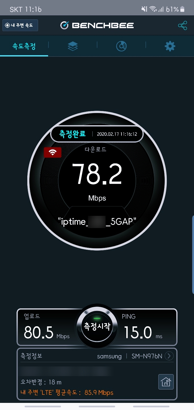 ipTIME Extender-A3MU가 신호를 잘 받고 있는지 확인해준다.