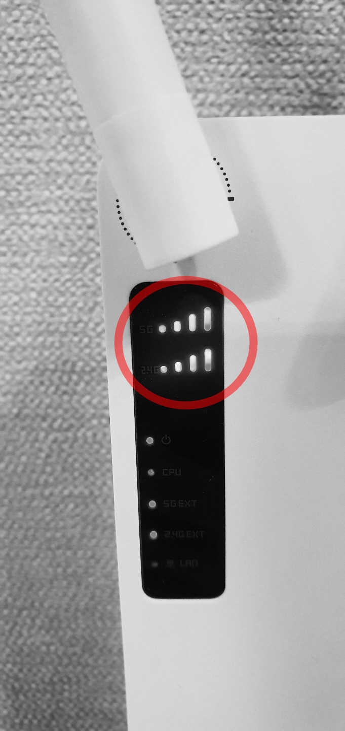 사진처럼 해당 안테나 바를 확인하며 공유기에서