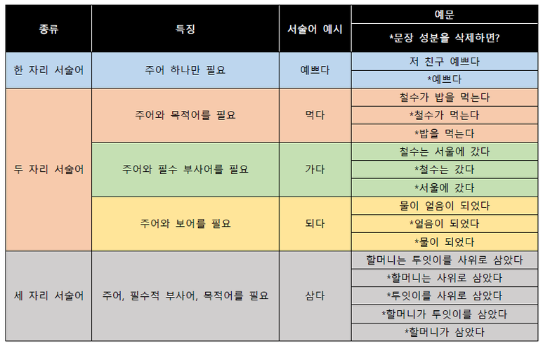 : 문장이 성립되기 위해 서술어가 요구하는 문장 성분의 개수