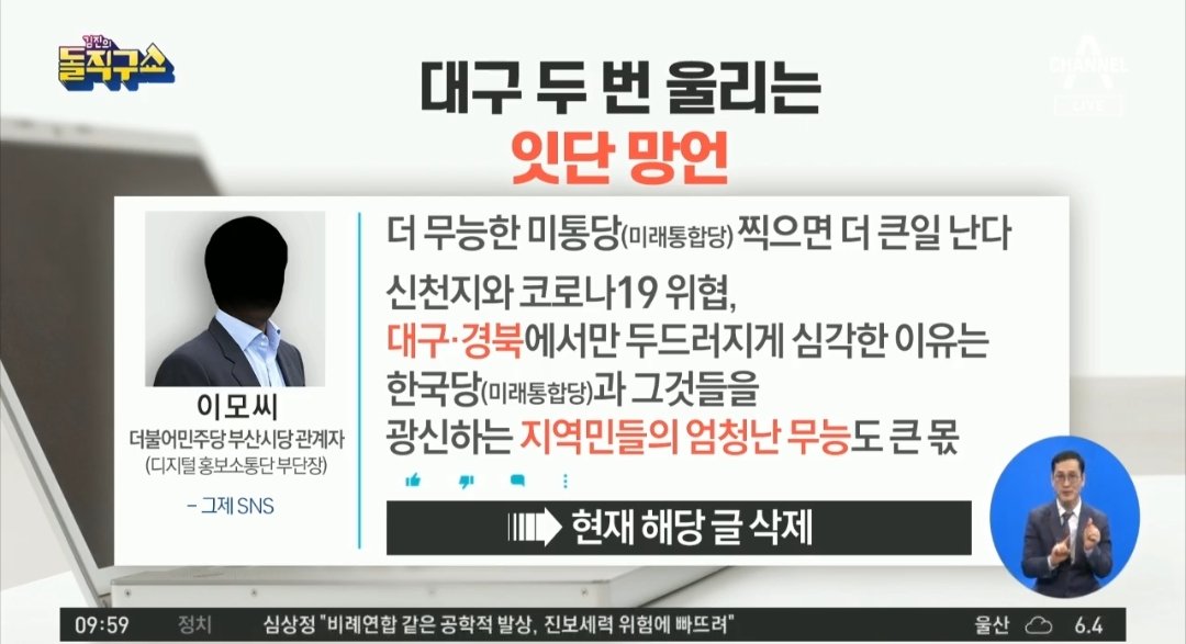 유튜브 썸네일이 참...PD가 대구 사태라고 한건 쏙 뺐습니다.